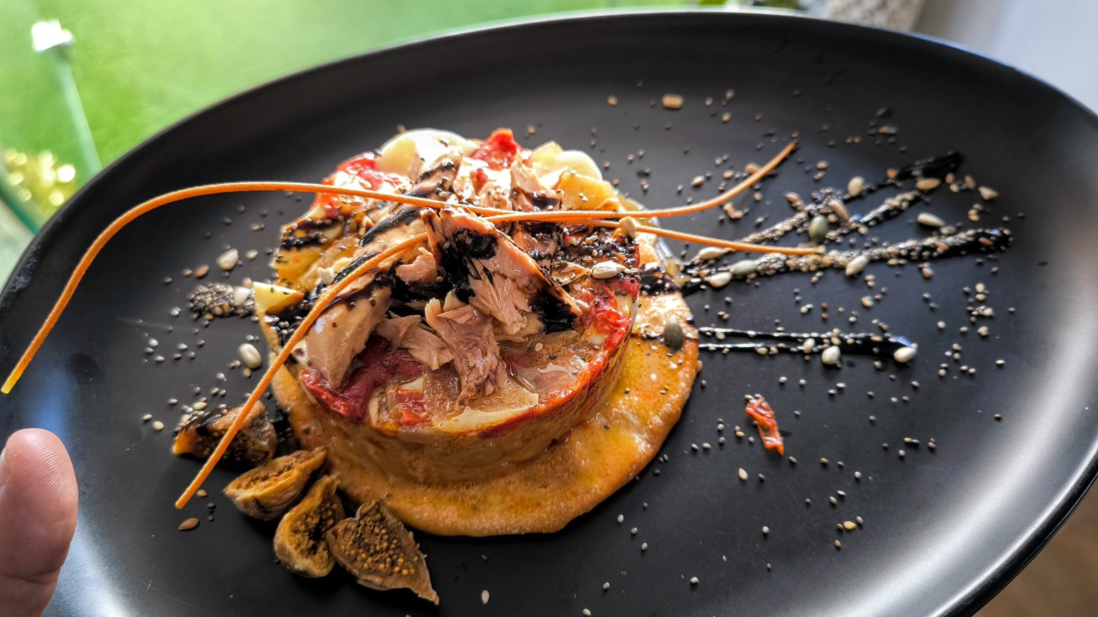 - Milhojas de tomate con queso de cabra 16 €