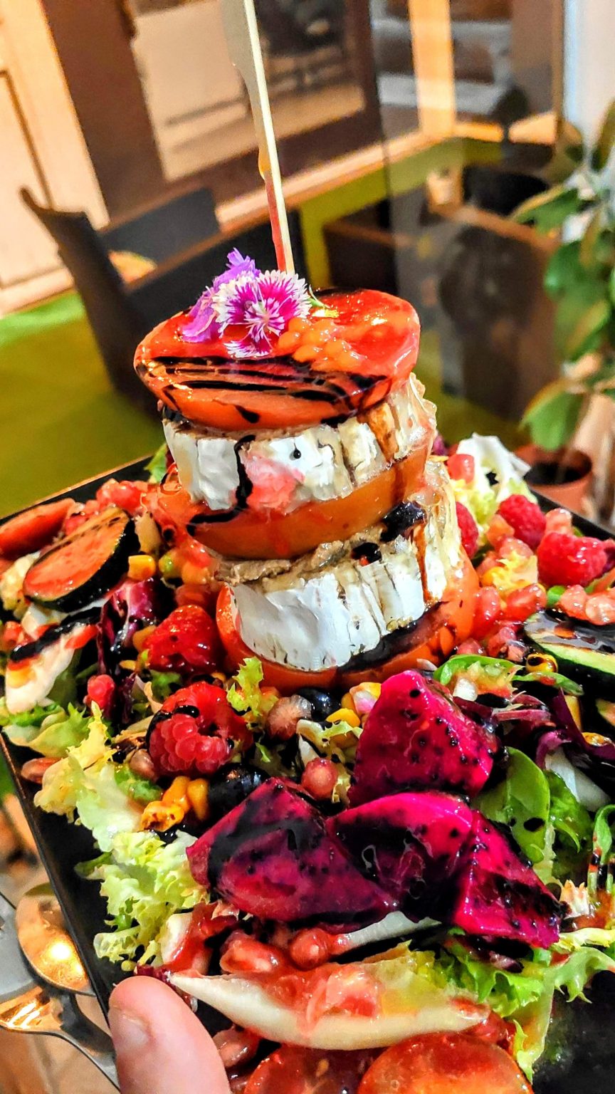 Milhojas de tomate con queso de cabra
